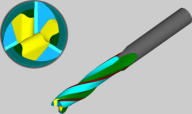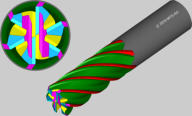 •Variably Helix of Fluting:•Cylindrical and tapered tools•Front and rear angle of helix•3 sections: Constant angle within 1. and 3. section; transition between front and rear helix-angle within 3. section•Rising or falling helix•Tool 1020017 „Endmills Variably helix“