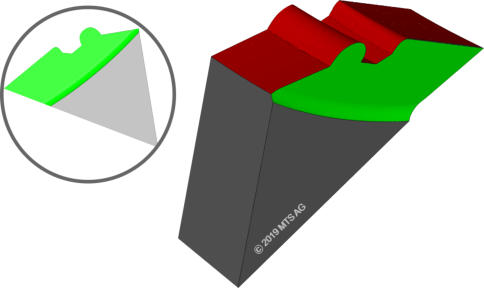 •Tool spectrumall convexe insert‘s profile outer surface with clearance / chamfering tools with longitudinal profiletools with transversal profiletools with frontal profiletools with profile combinations•Blank construction:blank by standard selection-tableblank by DXF-definition Machining of outer surface•Machinings: RoughingFinishingPolishing.Procedures:Cylindrical grindingLinear grindingPlunging•Chamfering of outer surfaceFront chamferingRear chamfering•Profile definition and machiningFree constructed cutting profilesOrientation: Longitud., transversal, frontal Profile combinationsPreparing of profile cutting edge:RoughingFinishingChamfering of cutting edge•Flute machiningTwo different proceduresLogitudinal grindingTransversal grinding (scalping)•Recessing and special featuresCreating recesses and special geometrical elements will be done by MTS-module „Open Procedure“.